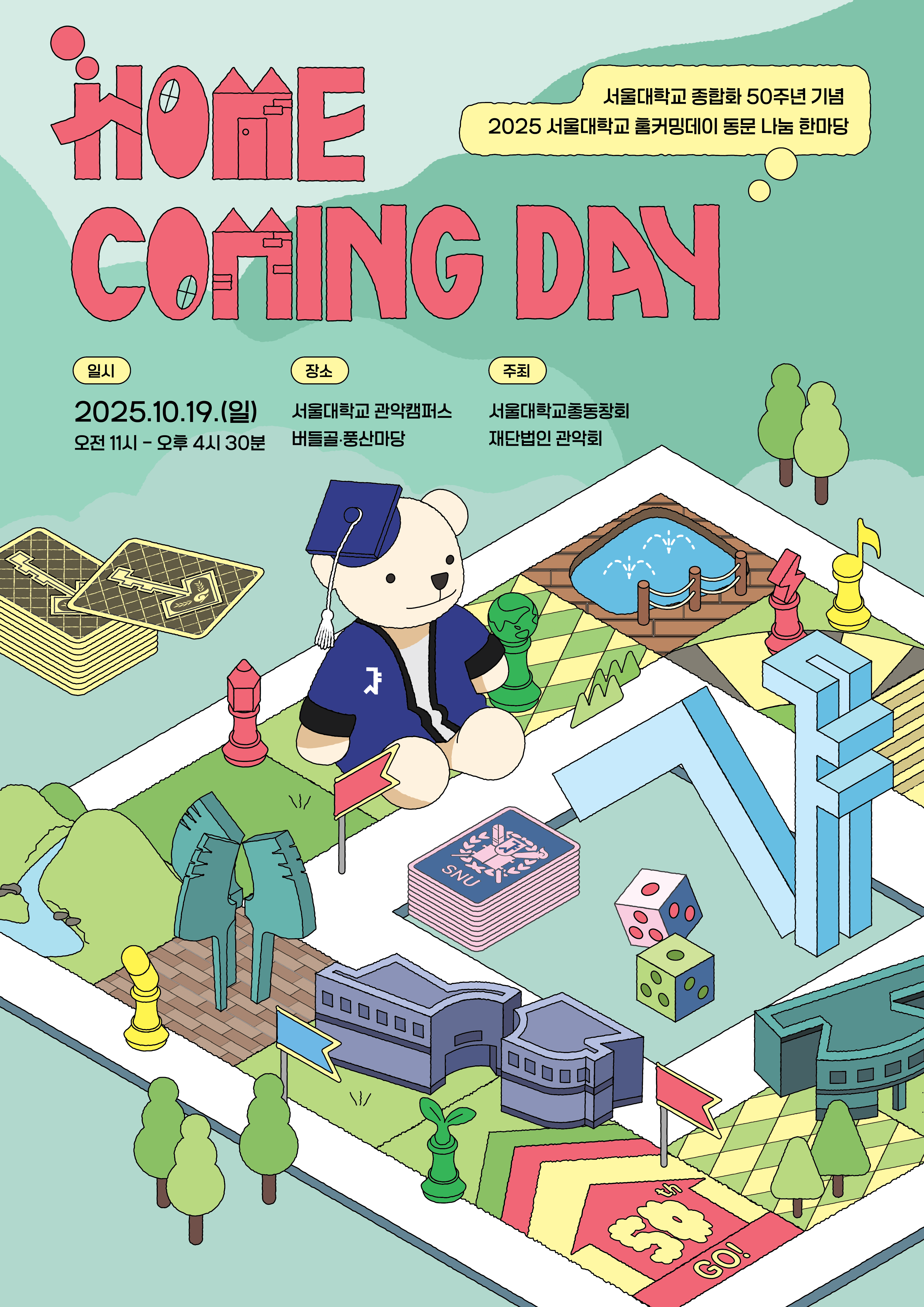 이를 기념하여, 지난 반세기 모교의 걸어온 길을 돌아보고 앞으로의 희망찬 미래를 함께 그리는 서울대 종합화 50주년 기념 「2025 서울대학교 홈커밍데이 동문 나눔 한마당」을 개최합니다.