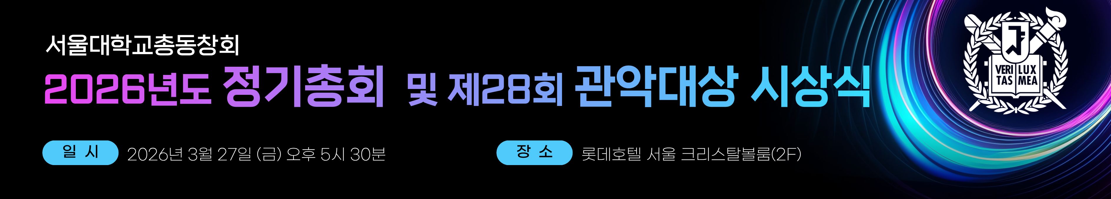 2026년도 서울대학교총동창회 정기총회 및 제28회 관악대상 시상식을 다음과 같이 개최하고자 하오니 바쁘시더라도 꼭 참석해 주시기 바랍니다.