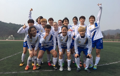 예선 첫 경기에서 첫 골을 넣은 후 기뻐하는 SNUWFC 선수들.