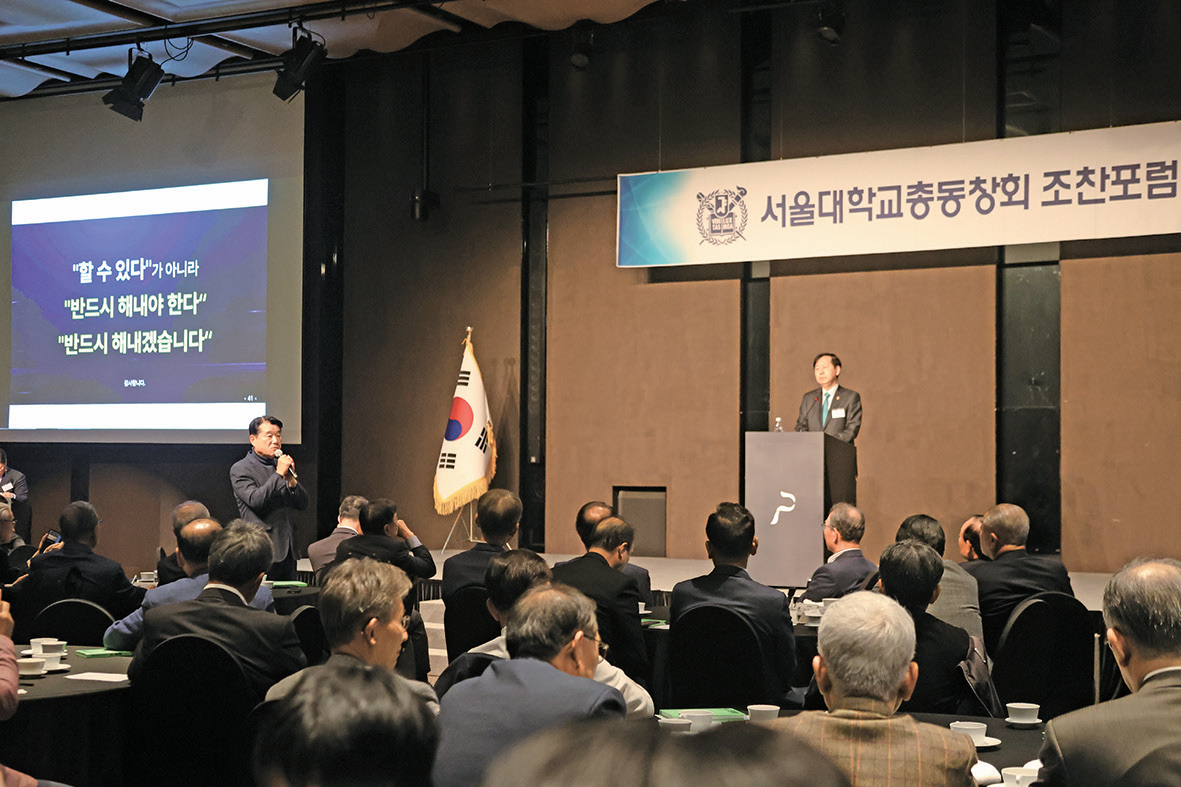 이날 행사에는 김종섭(사회사업66) 총동창회장, 유홍림(정치80) 총장, 이희범(전자67) 부영그룹 회장, 조완규(생물48) 전 총장, 서병륜(농공69) 관악경제인회장 등 주요 동문 인사들이 참석했다. 강연 종료 후 참석자들에게는 조찬과 구윤철 장관의 저서 ‘AI 코리아’가 제공됐다. 송해수 기자