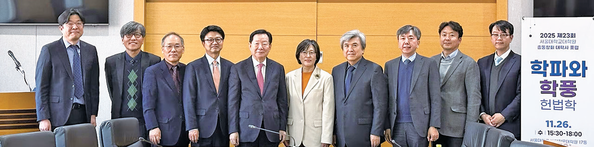 대학원동창회(회장 홍준형)는 11월 26일 서울대학교 17동 서암홀에서 ‘학파와 학풍, 헌법학’을 주제로 ‘제23회 대학사 포럼’을 열었다. 이번 포럼에는 성낙인(행정69) 전 총장, 홍준형(법학75) 동창회장, 이준정(고고미술사83) 대학원장, 이재민(공법87) 법학전문대학원장 등 20여 명의 동문이 참석했다.