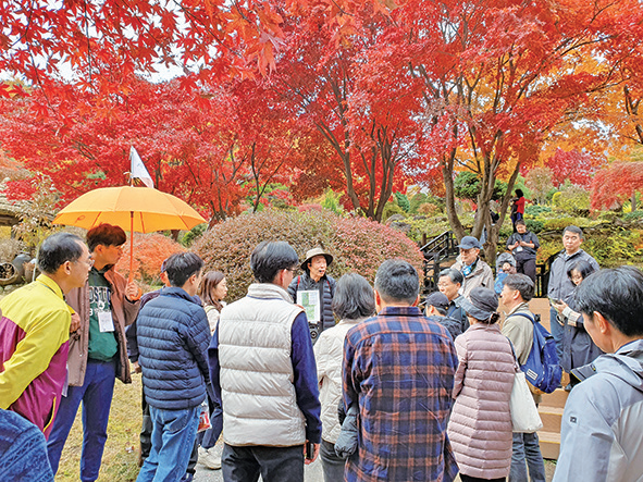 행사는 수목원 입구에서 단체 기념 촬영 후, 이경준(임학63) 명예교수의 숲 해설과 함께 본격적인 탐방이 진행됐다. 참가자들은 천년향, 한국정원, 국화 전시회 등 아침고요수목원의 대표 테마정원을 둘러보며 가을의 정취를 만끽했다.