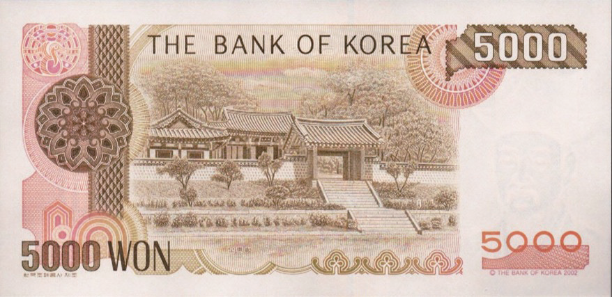 구 5000원권과 같은 구도에서 촬영한 오죽헌.