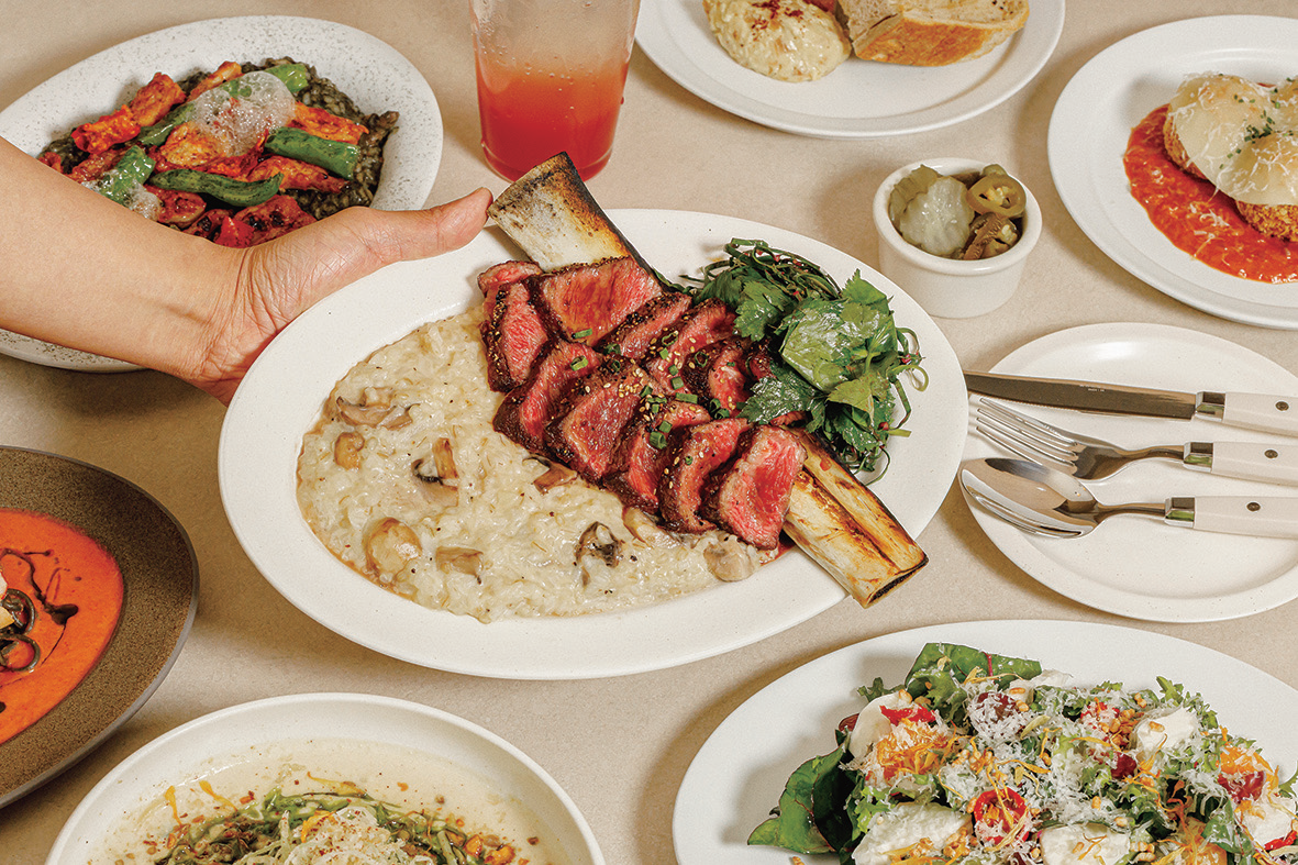 그렇게 탄생한 식당이 바로 ‘심퍼티쿠시’다. 유러피안 요리를 기본으로 하되 한국 식재료가 감각을 더한다. 고소하게 구운 차돌과 향긋한 고사리가 어우러진 차돌고사리파스타, 부드럽게 익힌 우대갈비의 깊은 육향이 녹아든 우대갈비리조또는 손님들이 꾸준히 찾는 대표 메뉴다.