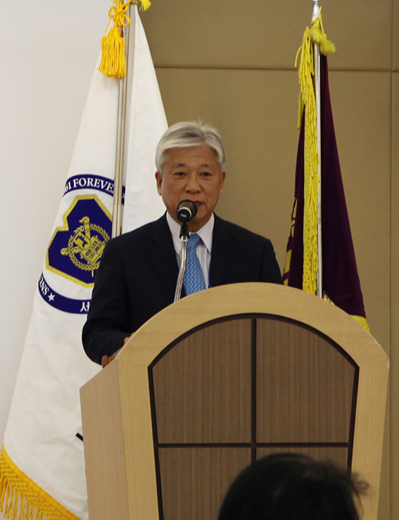 김형기 ROTC 동문회 신임 회장이 회장직 수락 후 연설을 하고 있다.
