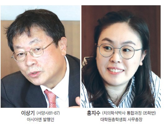 이상기 : 내가 만난 서울대인들은 배움에 대한 호기심이 남다르다. 서울대 출신으로 자존심도 세지만 자존감과 책임감을 갖고 사는 것 같다.