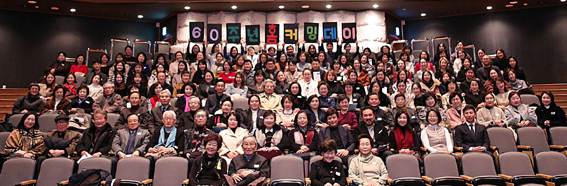 지난해 12월 7일 열린 국악과 창설 60주년 기념 홈커밍데이에 본회 신수정 회장, 국악과 이재숙 명예교수, 이지영 학과장을 비롯한 동문과 재학생 100여 명이 참석했다.